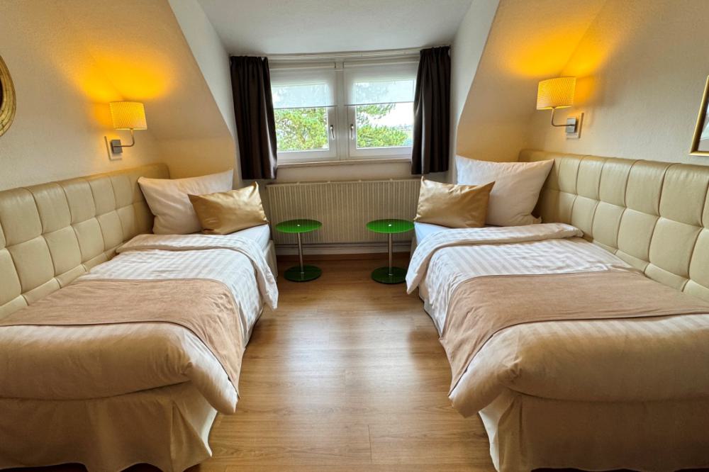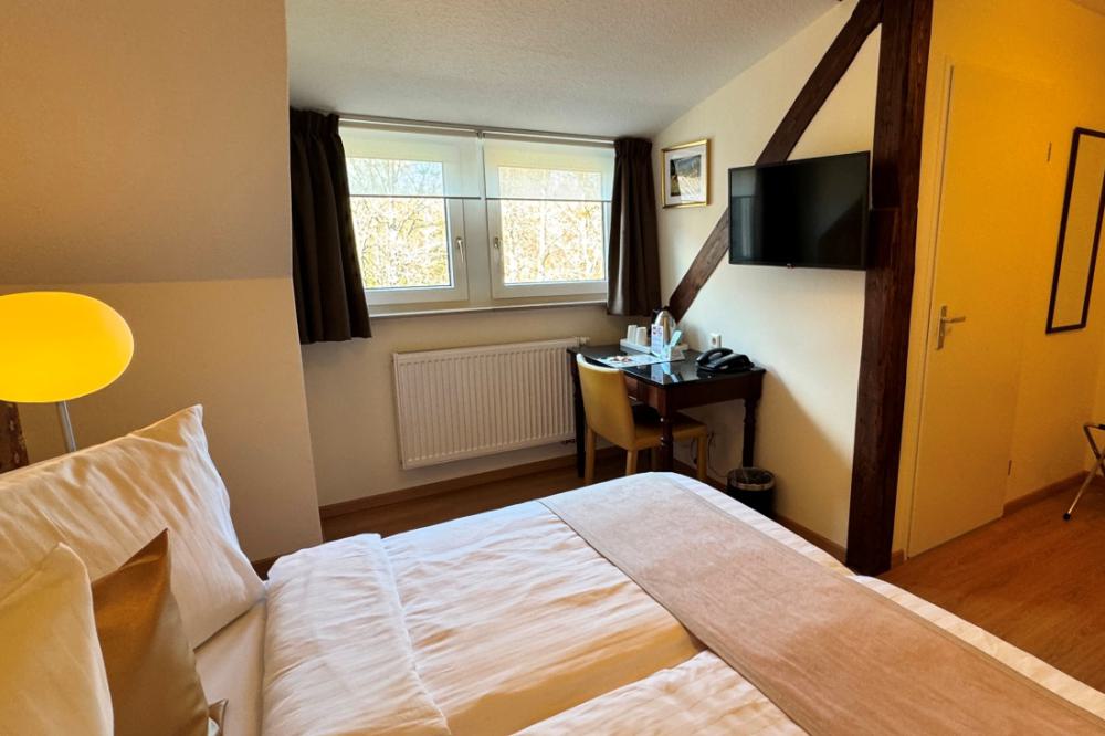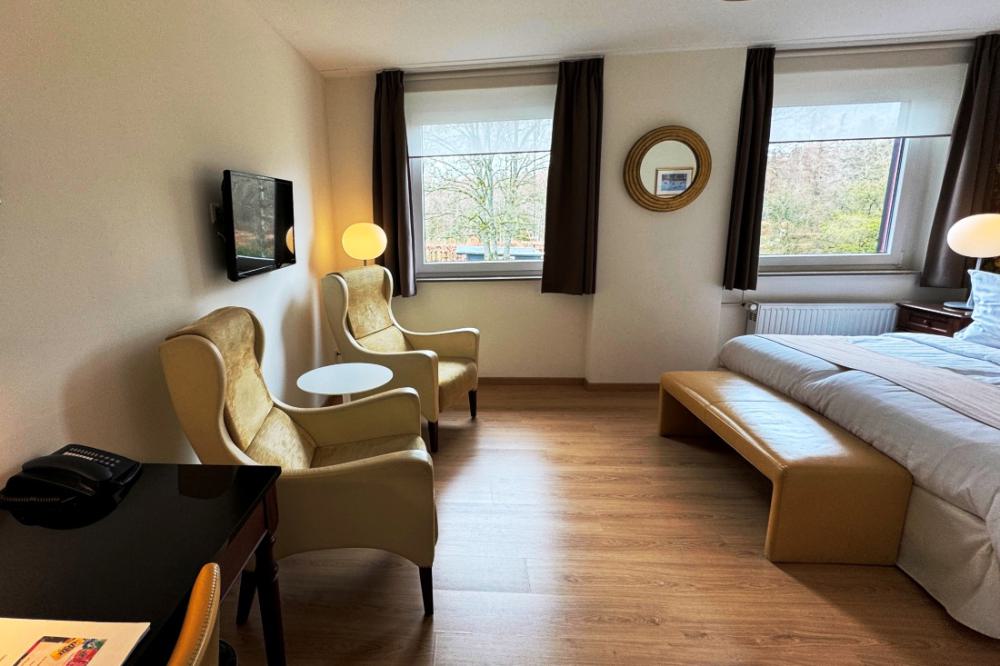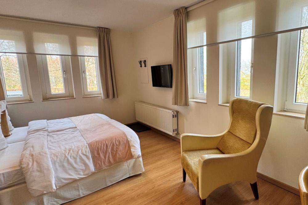 The standard double rooms are equipped with comfortable box-spring beds, a writing table, a seating area and coffee and tea in the room. All rooms have recently been completely renovated. The rooms are located on the first and second floor and have a private bathroom with a shower and toilet. These rooms offer enough space for a long or short stay.
