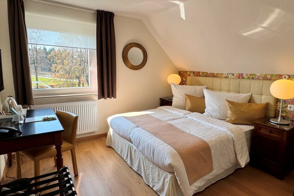 The standard double rooms are equipped with comfortable box-spring beds, a writing table, a seating area and coffee and tea in the room. All rooms... Read more →