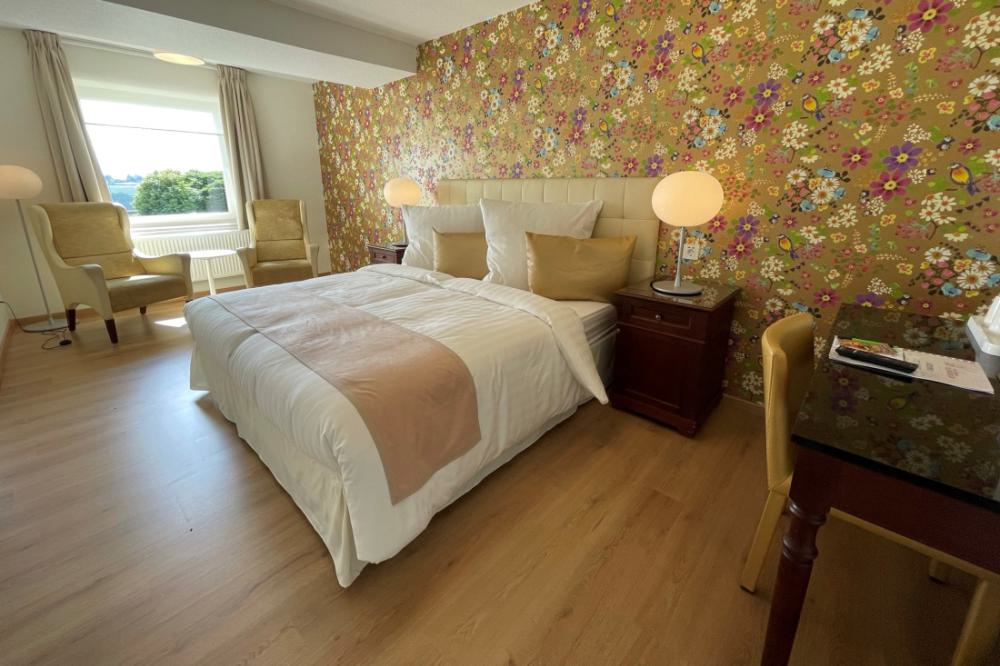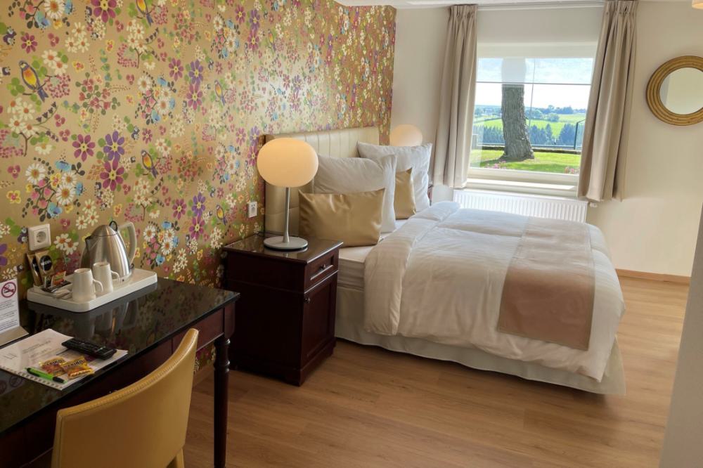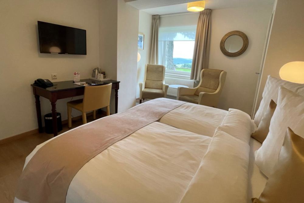 The comfort double rooms are very suitable for guests who need more space and extra comfort. All comfort rooms have recently been completely renovated. These spacious rooms are located on the ground floor and first floor and have a private bathroom with a shower and toilet. The rooms are equipped with comfortable box-spring beds, a writing table, two comfortable armchairs and coffee and tea in the room. Most comfort double rooms also have a magnificent view over the valley.